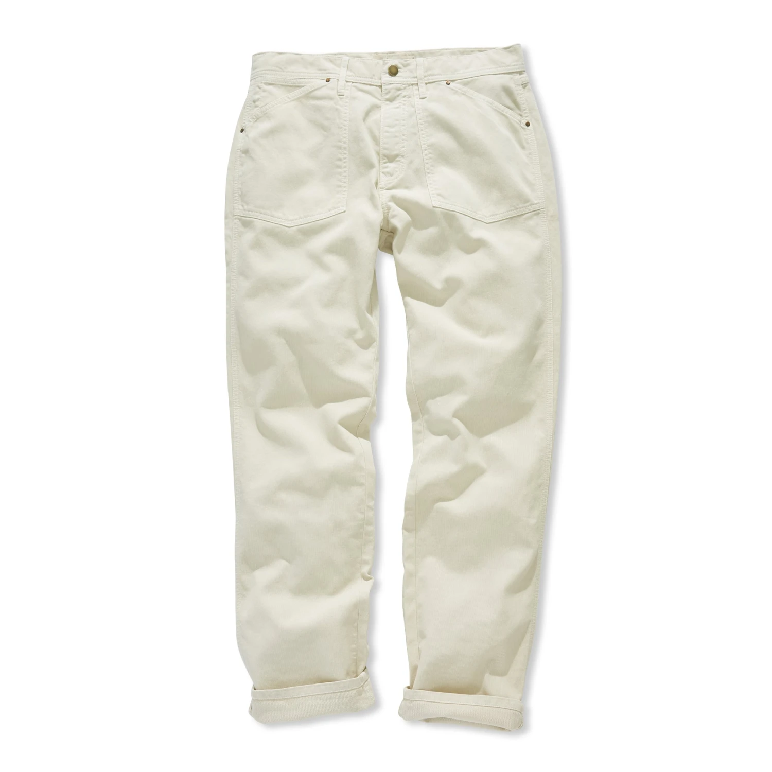 A genuine workhorse fabric with the character of corduroy and the durability of canvas. More interesting than your jeans. Tougher too. Classic five-pocket construction. Gutsy double-needle stitching. Antique nickel shank buttons. Mid-rise. Zip fly. Perhaps too special to be your work pants but have the gumption to get the job done. Spun on vintage looms in Japan. Imported