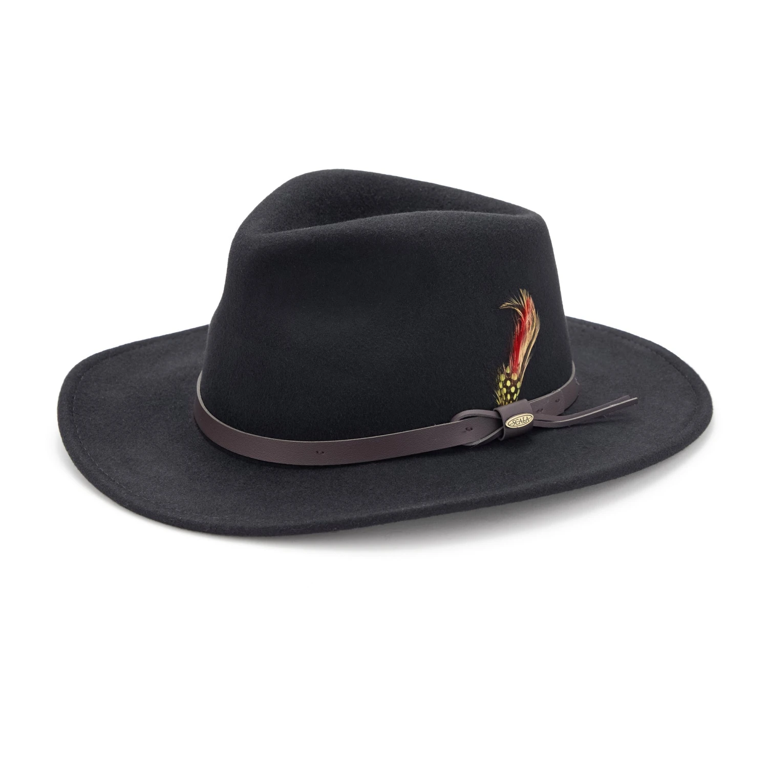 Crushable Outback Hat (No. J4052), in water-repellent wool felt. Rolls up and tucks away into your knapsack, shakes right back into shape. Excellent for cold, damp August days in Barramunga. Imported.