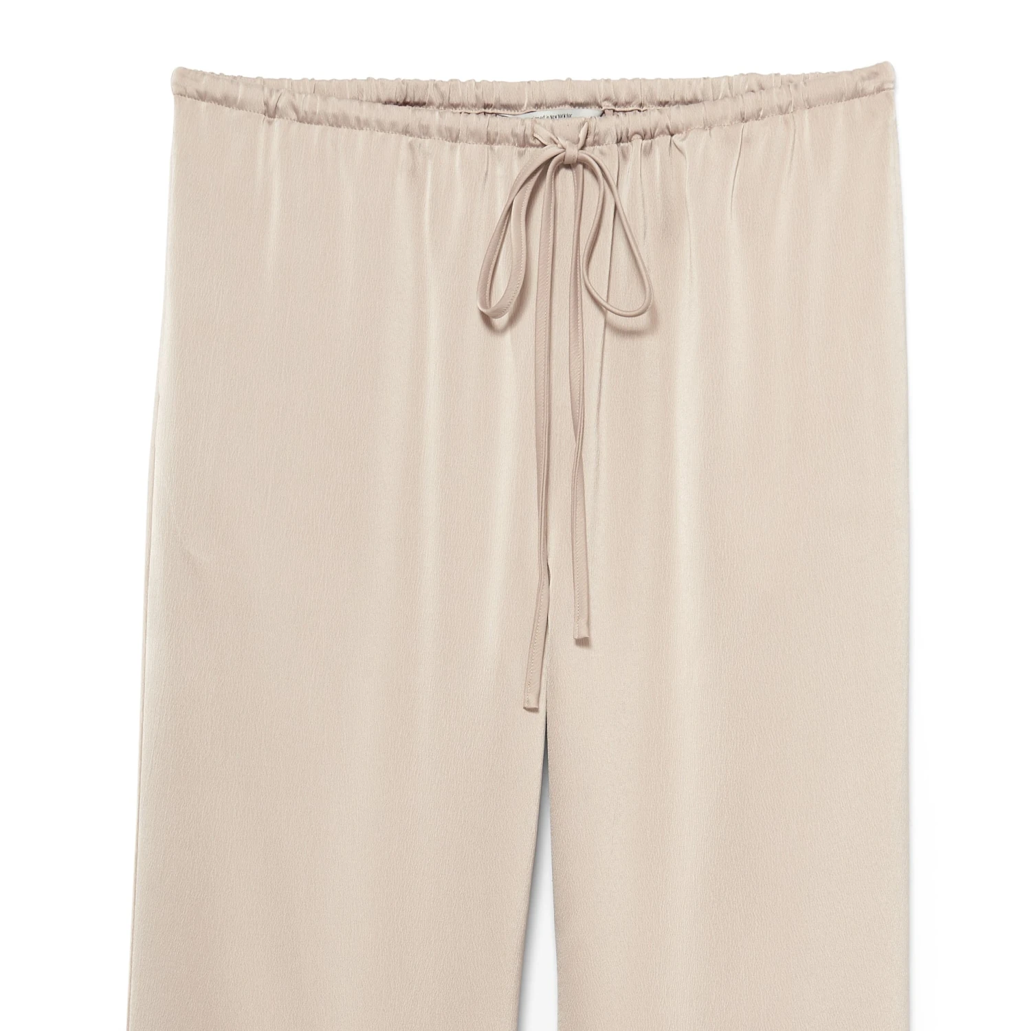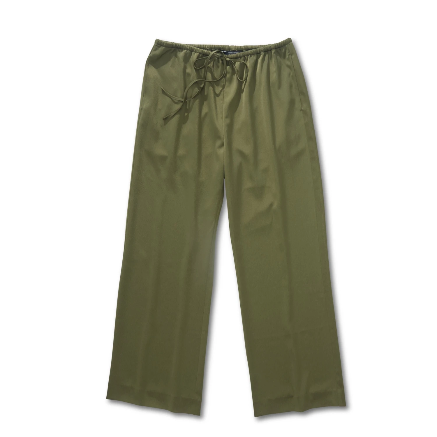 Drawcord Crinkle Pants (No. 6456) in extravagantly soft Japanese sandwashed crinkle cupro polyester. Elastic back waistband. Drawcord at waist. Above-the-ankle length. Imported.Â