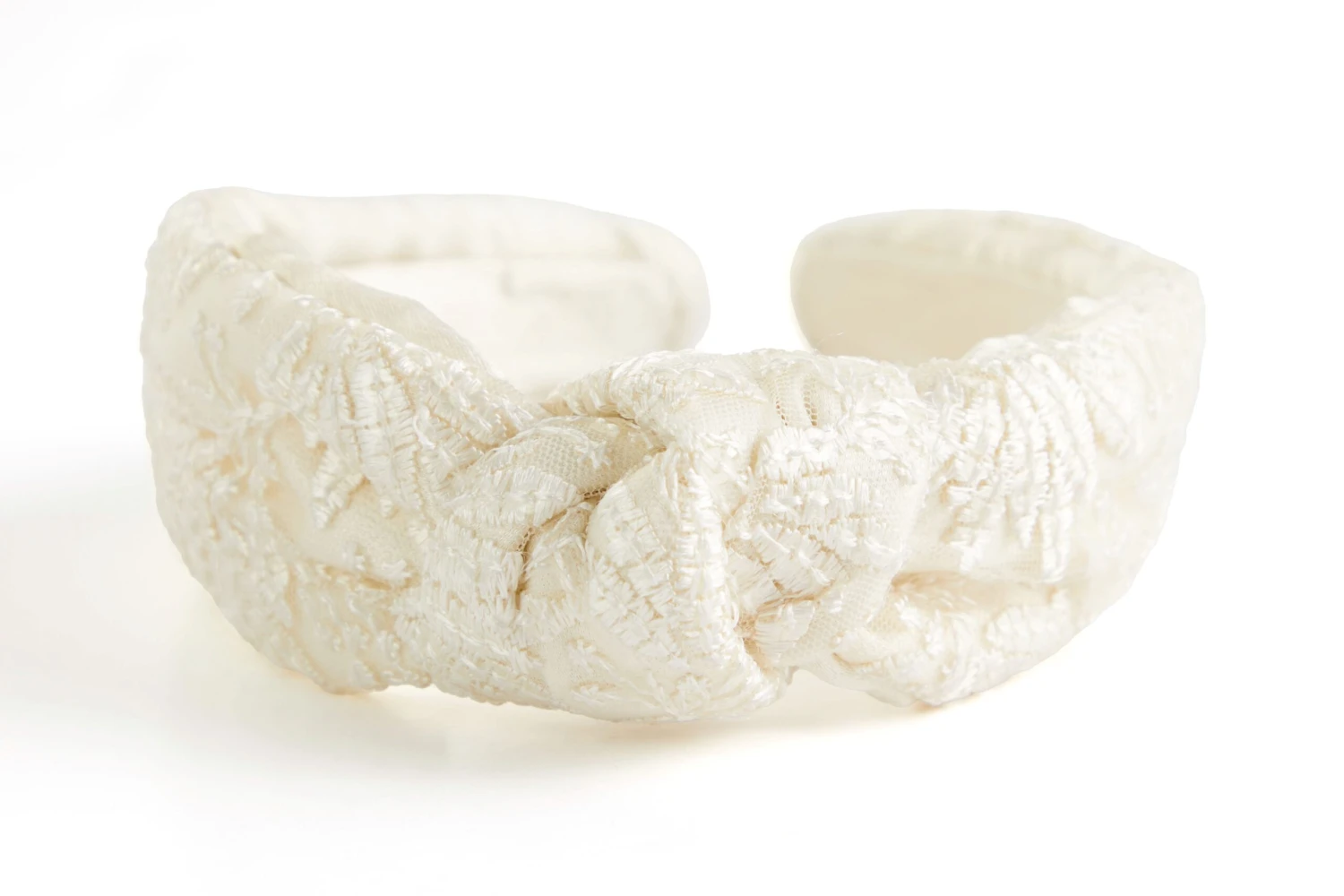 Eyelet Knotted Headband (No. J8388). The lovely and lighthearted accent for all your spring looks. Intricate eyelet fabric embellishes this charming headband, knotted at the top for some extra panache. Poly band. One size. Imported.