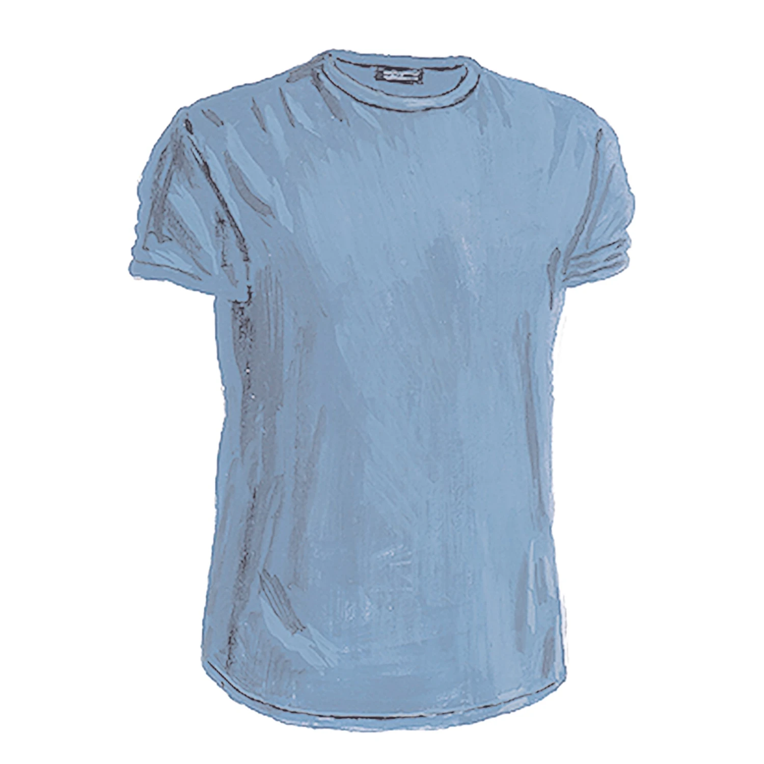 Father of All T-Shirts (No. J1305).  Soft, stretchy jersey knit, tapered sides. Finely ribbed neck, not clunky. Sleeves gather at the top of a man’s arms—even if he rarely lifts more than a pen. Imported.