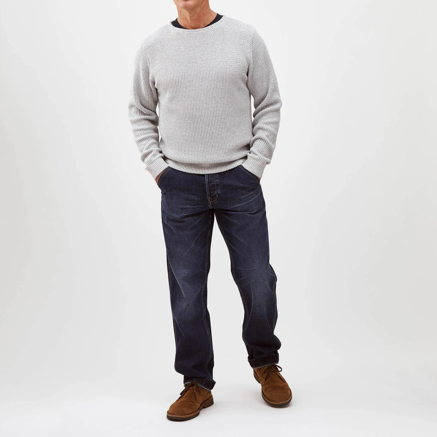 • Crew neck• Cotton blend• Horizontal raking stitch at yoke