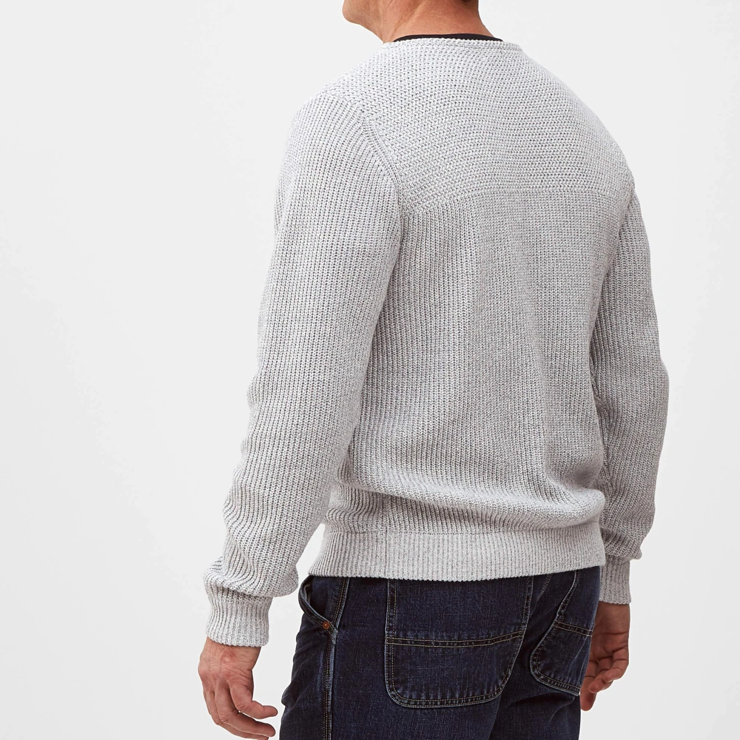 Fisherman’s Bay Sweater (No. 6627). Looks great, keeps you warm (but not too warm). Based on a classic fisherman’s sweater. Crew neck. Cotton blend. Horizontal raking stitch at yoke. Imported.