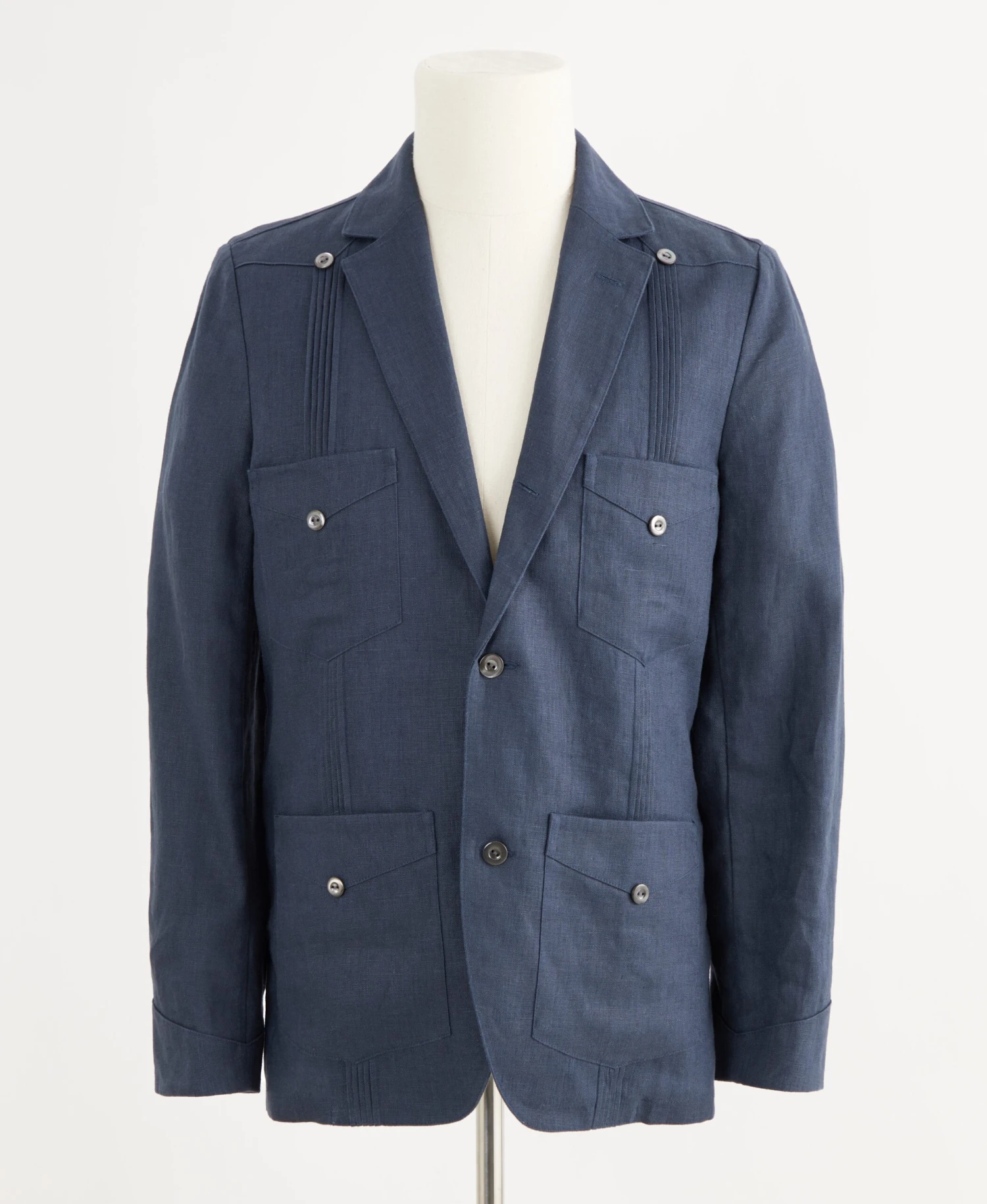 Havana Nights Blazer (No. J8261). If a linen blazer and a guayabera shirt met in Key West and shared a private flight to Havana, they would conspire to make this jacket before landing. Has all the details of a traditional guayabera shirt delivered in our best 100% plain-weave linen. Four patch pockets. Authentic mother-of-pearl buttons at pockets and