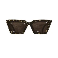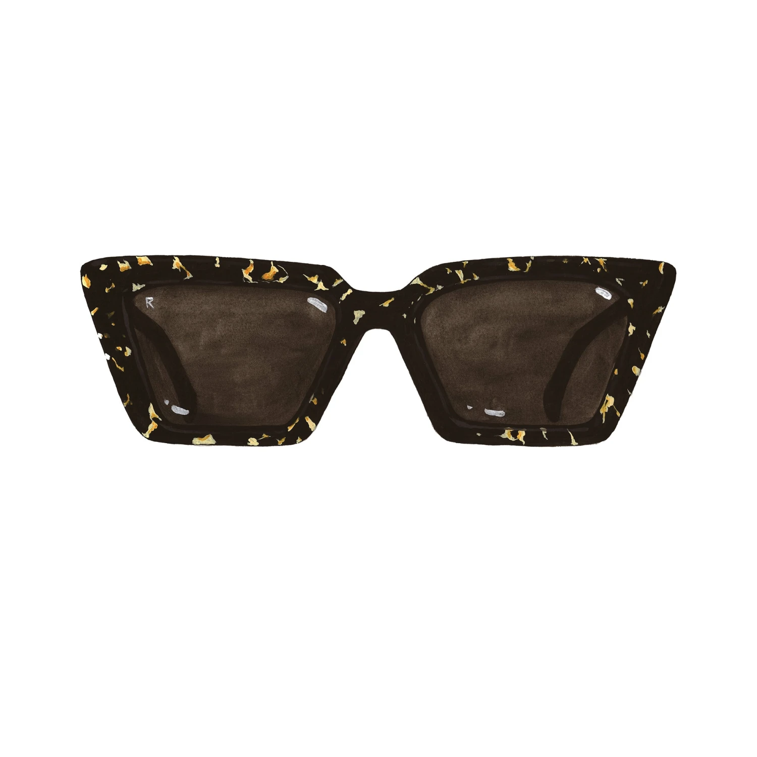 Keera Sunglasses (No. J8387). Perfectly retro and marvelously modern. The exaggerated angles and a blocky acetate design join forces with the fin-like temples to provide a distinctive upswept look that falls somewhere between a cat-eye and 90s rectangular frames.