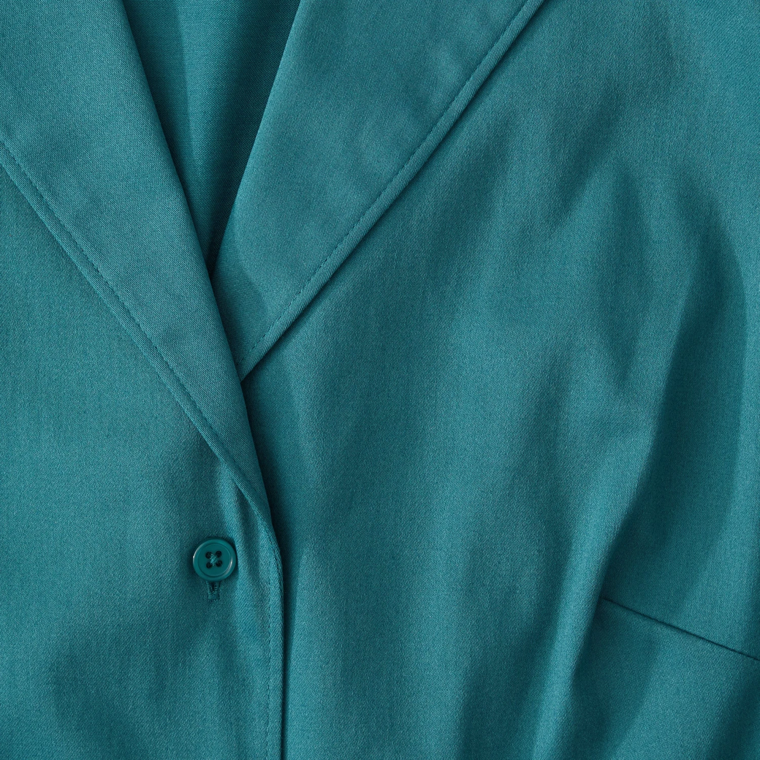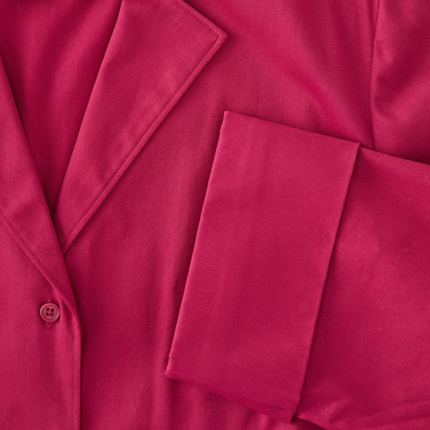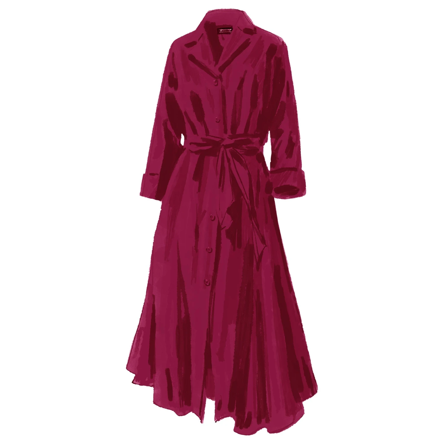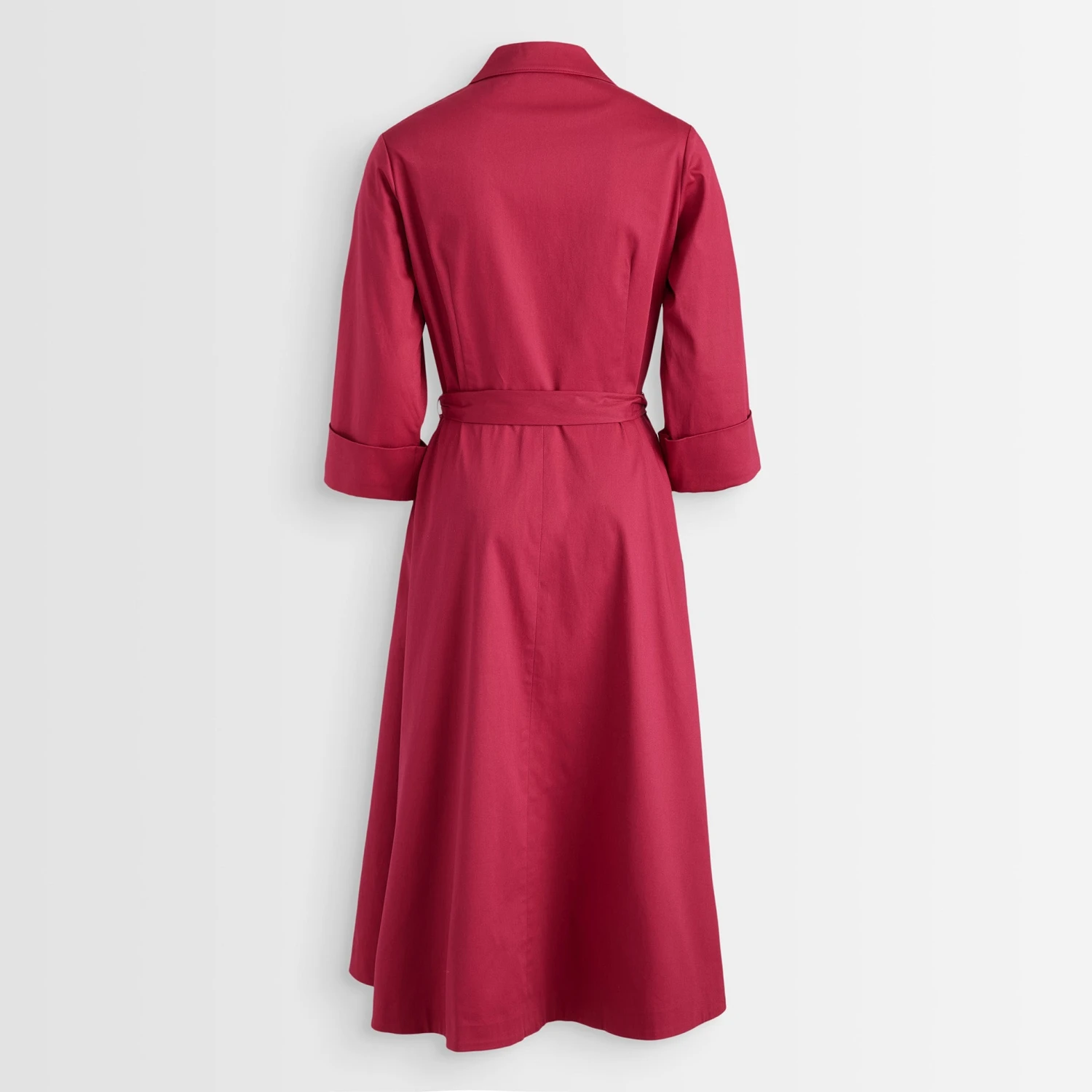 Long-Sleeve 1947 Dress (No. J6778). Deliverance from the boxy, skimpy cut of WWII utility fashions. Splendid cotton blend with the same swinging sweep and sash ties as the short-sleeved version. Mid-calf length. Same V-neck bodice, darts at bust and waist. Same notched collar to stand up pertly if you wish.