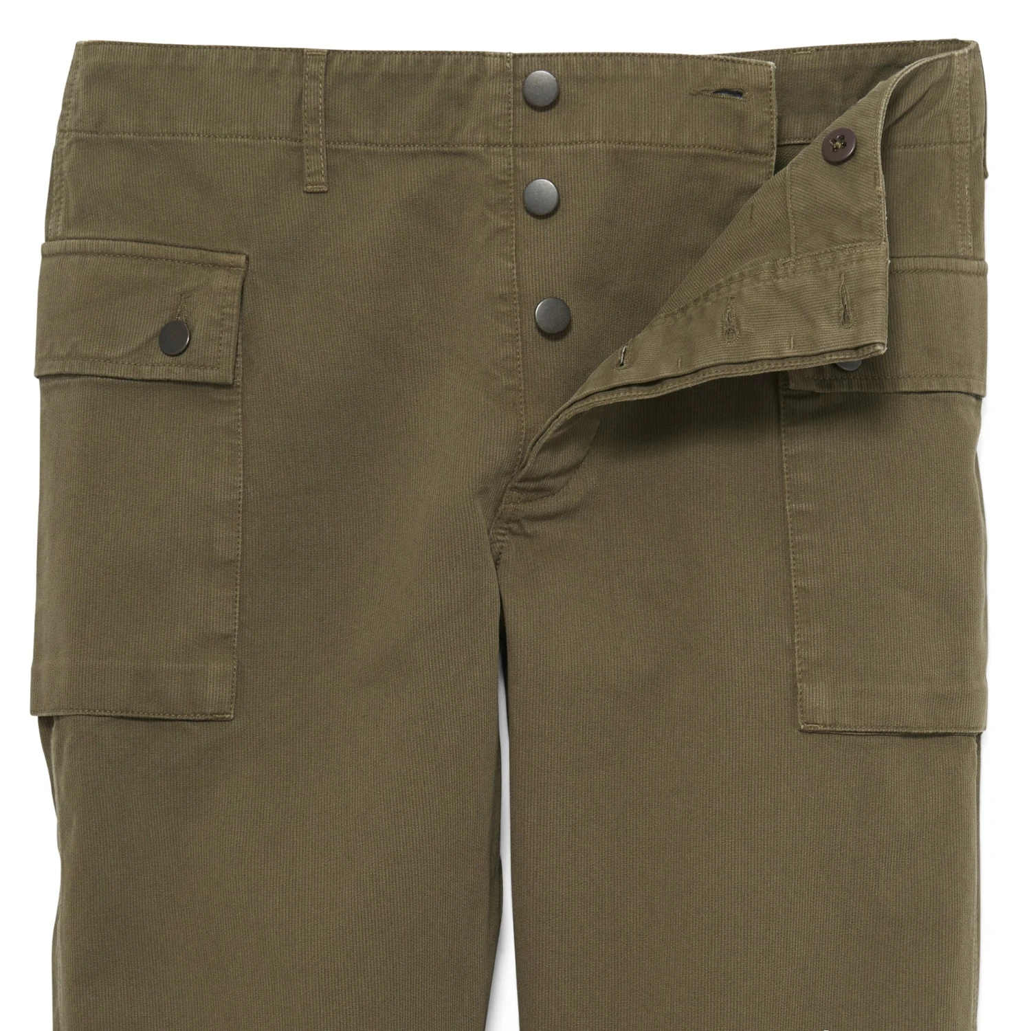 P-44 Monkey Pants (No. 7191). Inspired by the authentic WWII P-44 USMC HBT pants. Strong and handsome herringbone twill (like the originals). Five buttons at hidden button fly with interior security button inside front waist. Has belt loops but also interior suspender buttons. Two extremely ample (aka large) bellows pockets at front with flap and double-button closure (pockets extend around sides). Large bellows pocket at back with flap and three-button closure (your butt pack). All buttons are aged brass. Be ready for questions. Imported.