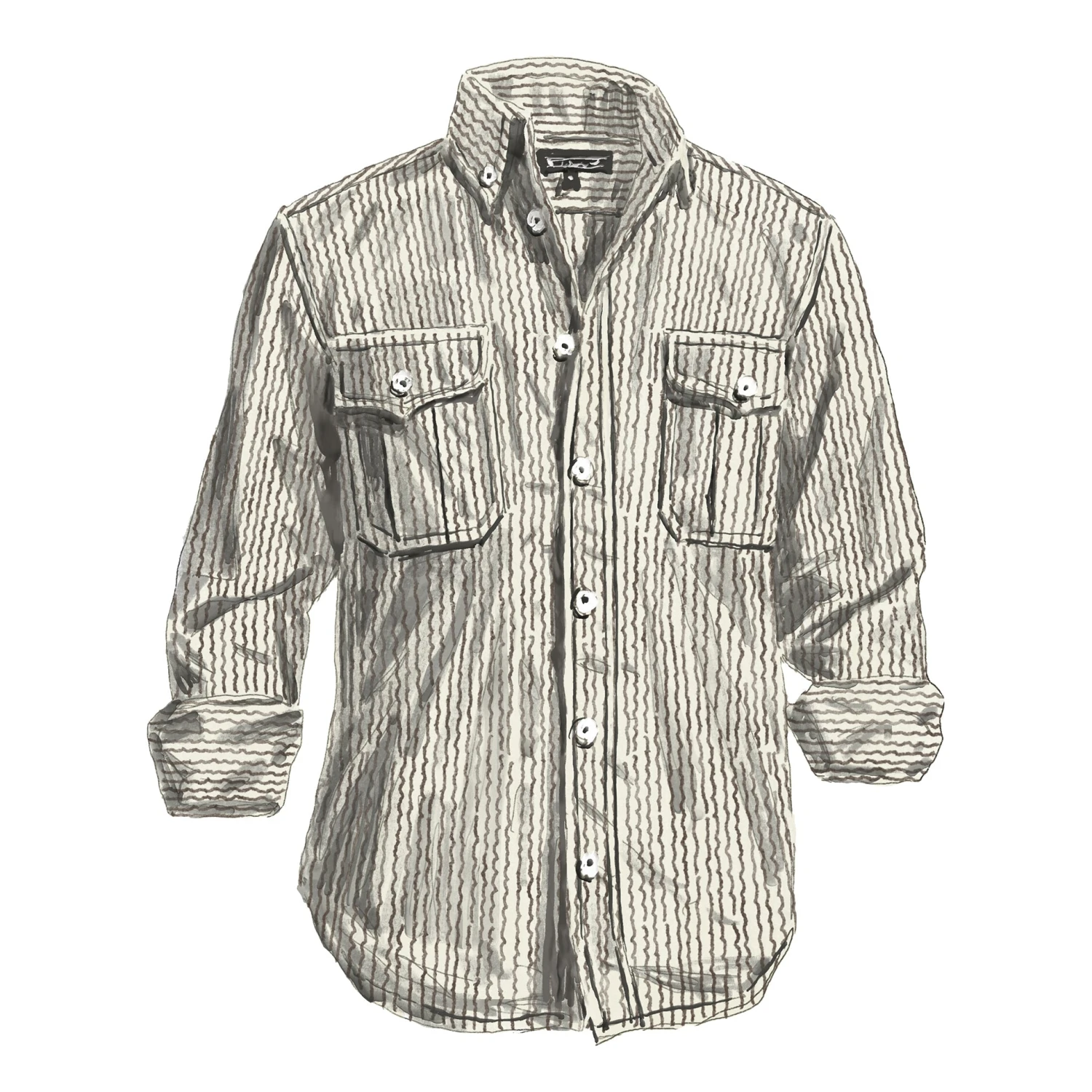 Pablo’s Studio Shirt (No. J8244). Wear it wherever you spill your soul. Particularly effective during passionate disagreements with yourself in the park (the more strangers in earshot the better). Then off to dinner. Stains and all. Comes in a soft and sturdy 100% cotton offered in two printed designs. Chest pockets. Button-down collar. Roll the sleeves. Wear it buttoned up for a posh look. Try it with a tie. For work, play, and tumult. Imported.