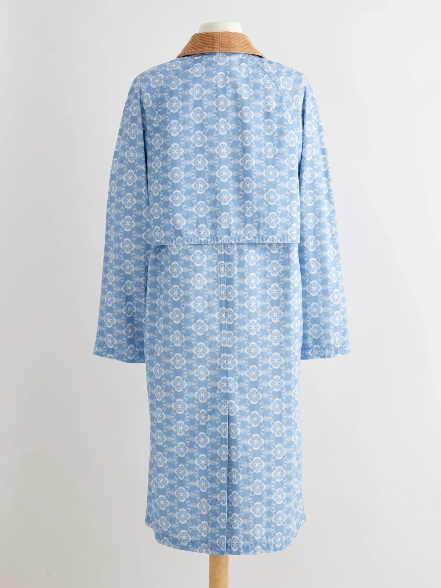 Printed Horseman’s Duster (No. J7566). We gave our classic horseman’s duster a colorful update for spring with this stunning print. Same practical, thoughtful details as ever. 8-wale corduroy collar. High count 100% cotton canvas outer shell. Antiqued brass snaps and adjustable closures at cuffs. Two side-entry pockets. Falls to mid-calf on most. Imported.