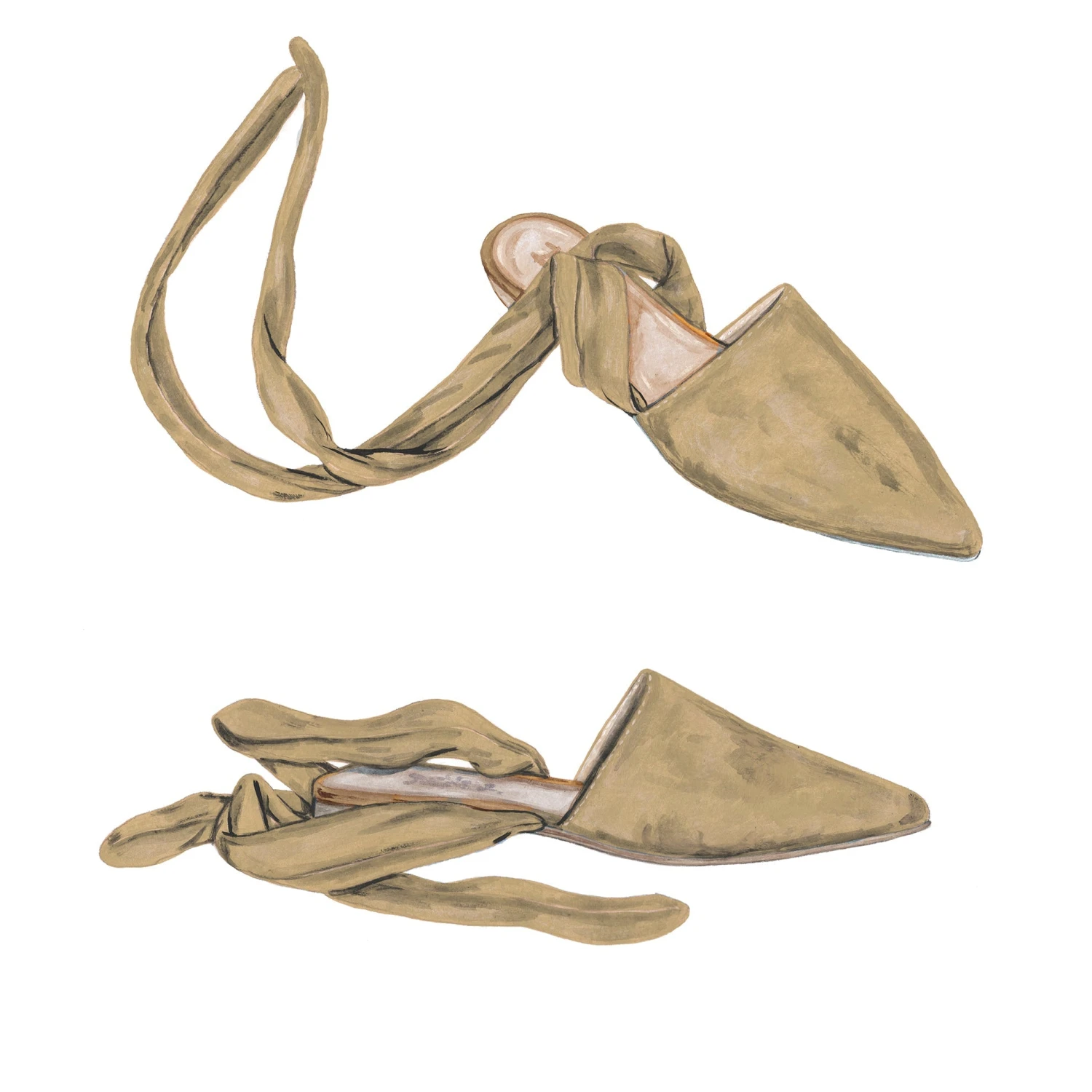 Slip on these flirty suede sandals with whimsical lace-up ties and head to Agiou Street to drink xiboquinha with your best friend.