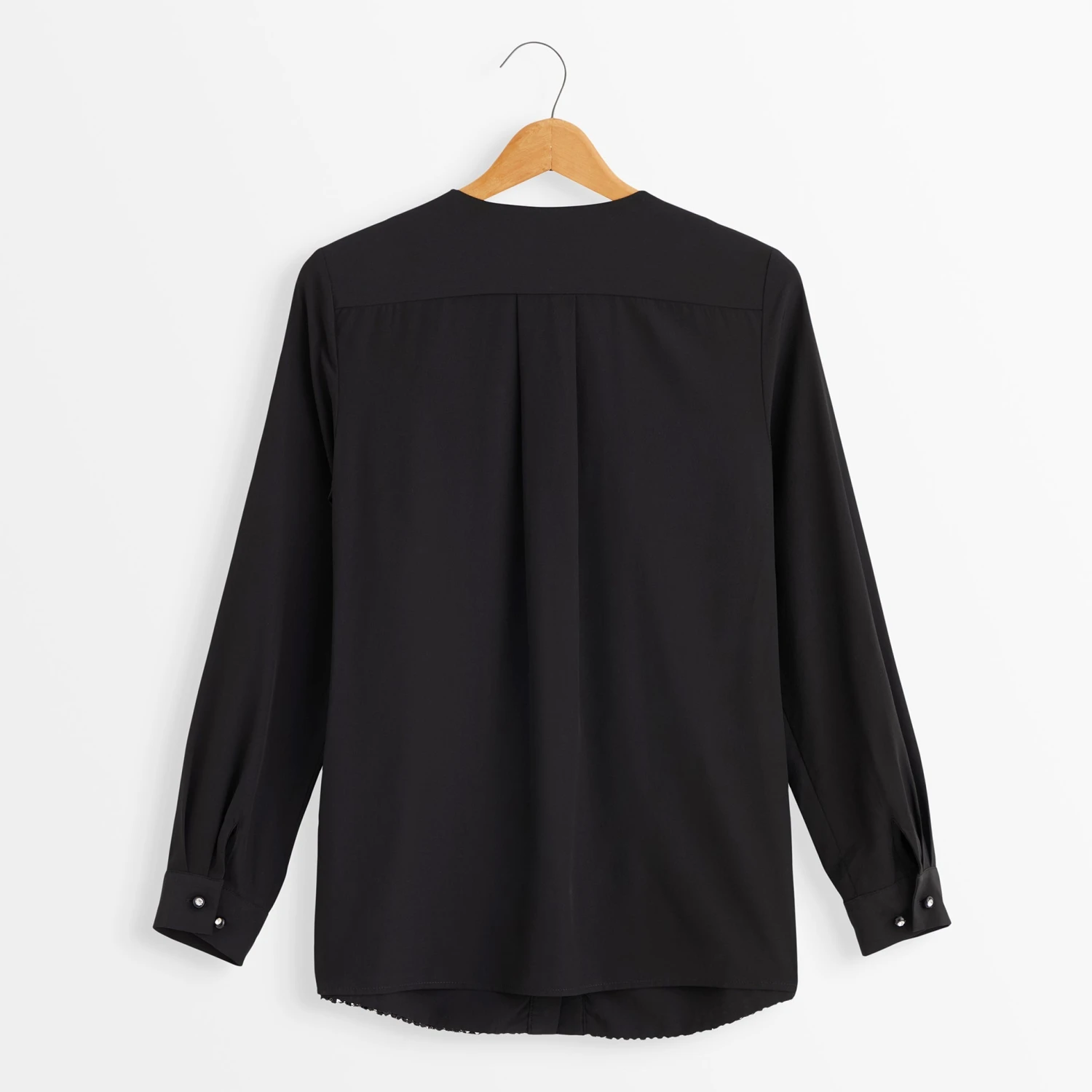 You will have some sophisticated fun with this Sequin Bib-Front Blouse (No. 5432).