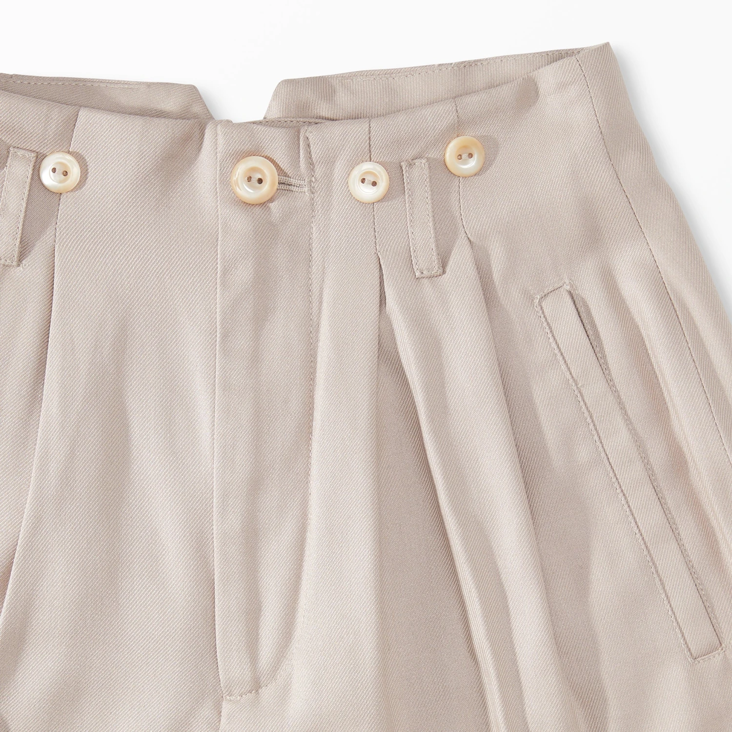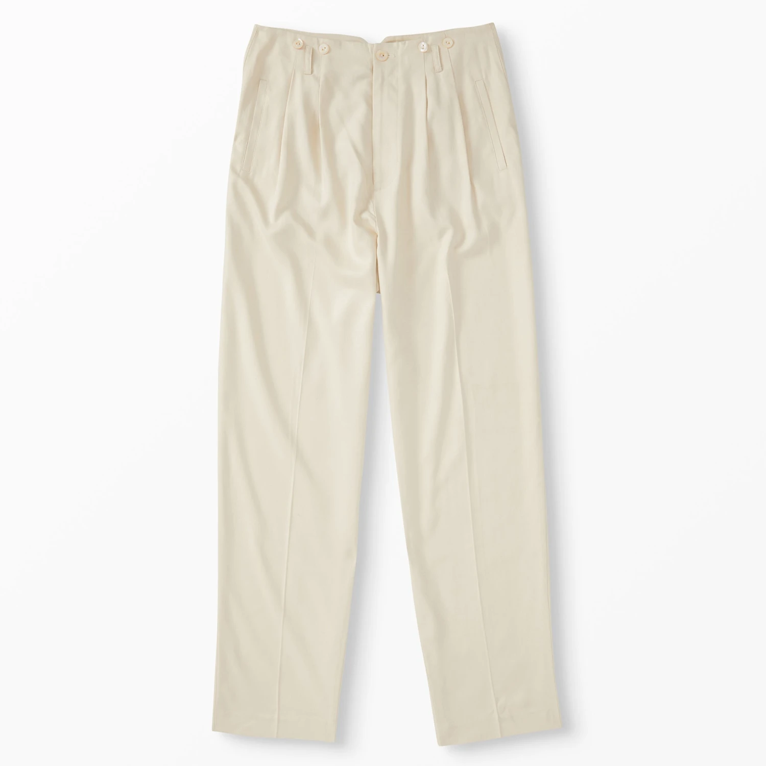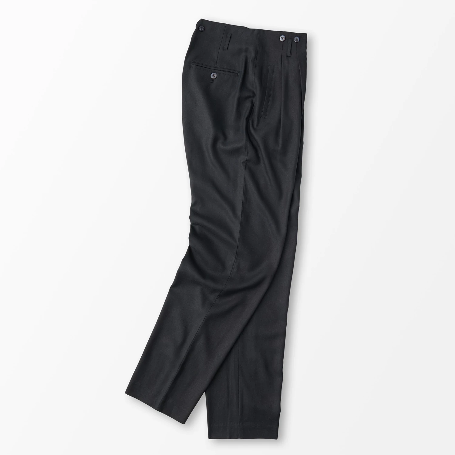 The Silk Glamour Pant (No. J8739). Details: French zipper fly, four stitched-down front pleats, suspender buttons front and back. No waistband. Four narrow belt loops at waist. Two button-through double-welt back pockets, and two off-seam vertical welt front pockets. Yes, glamorous. Imported.