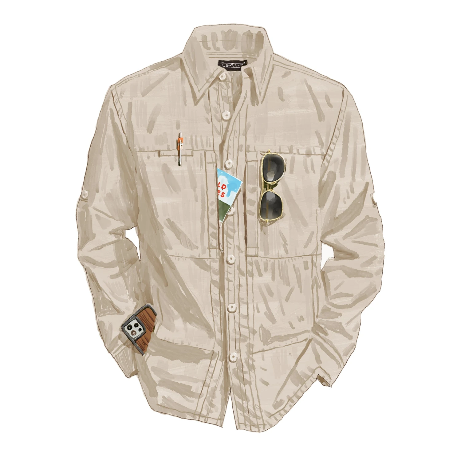 The Anglers Shirt (No. J8715). Made from a performance cotton nylon blend for unhindered movement. Four hidden, on-seam zipper pockets for protectedÂ