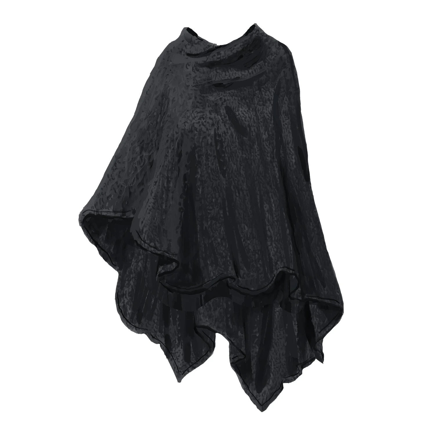 The Cashmere Poncho (No. J8728). Wide boat neckline to show off some shoulder. Asymmetrical hem. 48” at its widest point. The back V is 13 1/2” deep, while the overall length in back is 34”. Slightly shorter in front, the top-to-bottom length is 24”. One size. Imported.