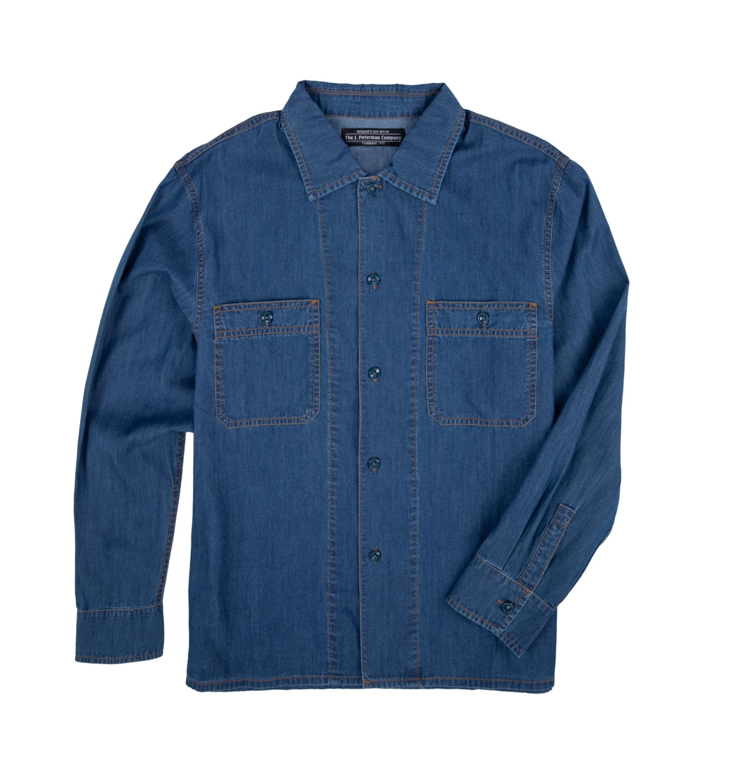 U.S. Navy Chambray Shirt (No. J8176). Adheres faithfully to the design details of authentic WWII- and Korean War-era U.S. Navy chambray shirts, but in a lightweight 100% cotton chambray ideal for spring and summer. Feels broken-in from day one. Extra-wide placket facings. Two-hole channel urea workwear buttons. Double-needle stitching. Adopted and made famous by the U.S. Navy, made even more famous by certain kings of cool. Imported.