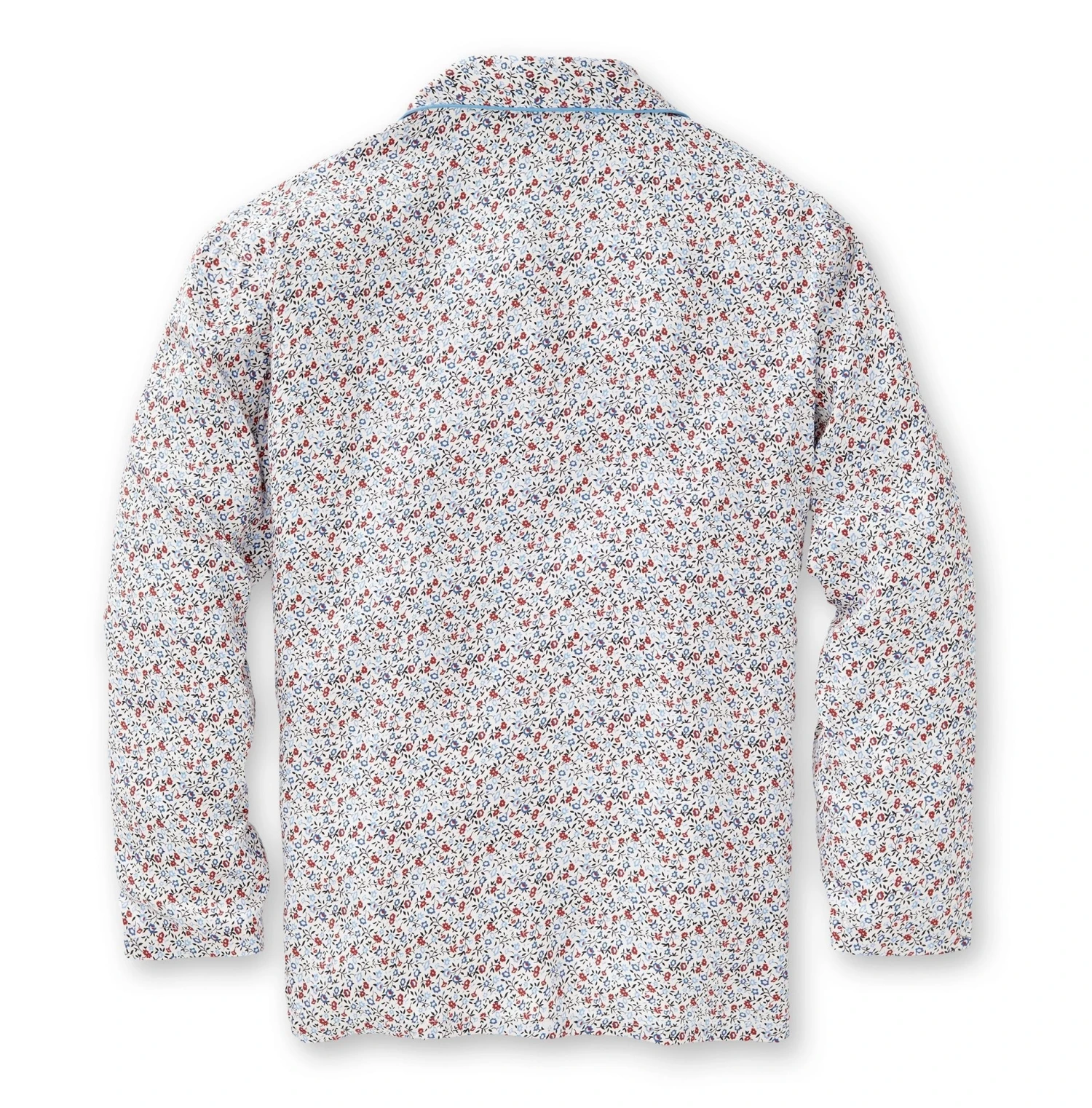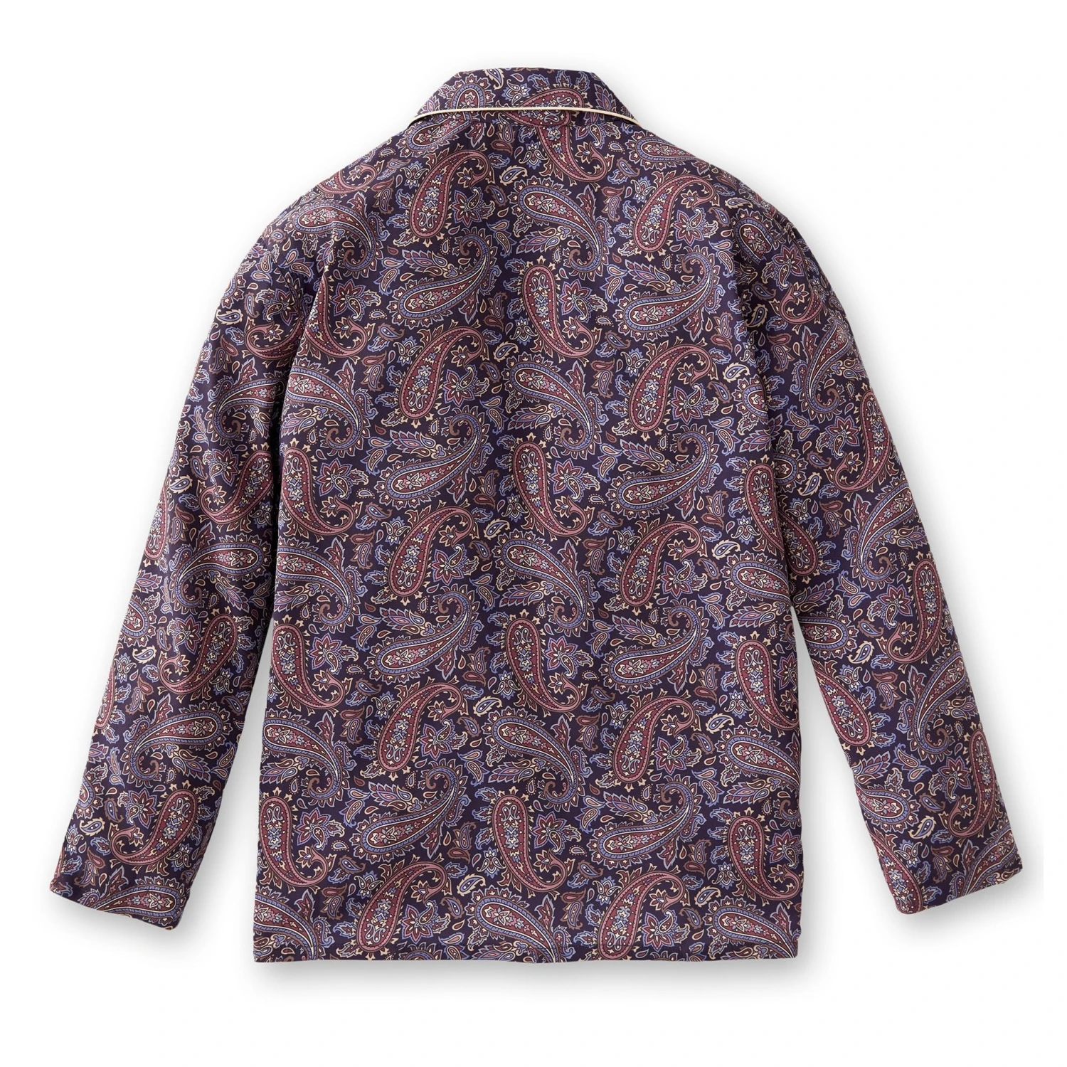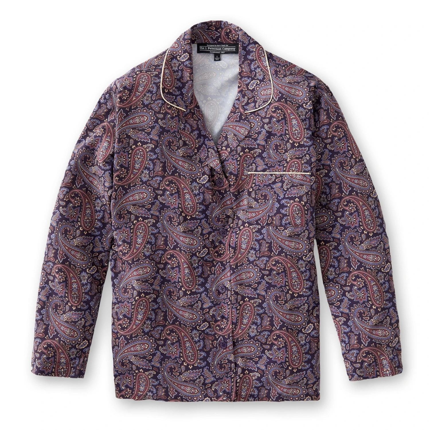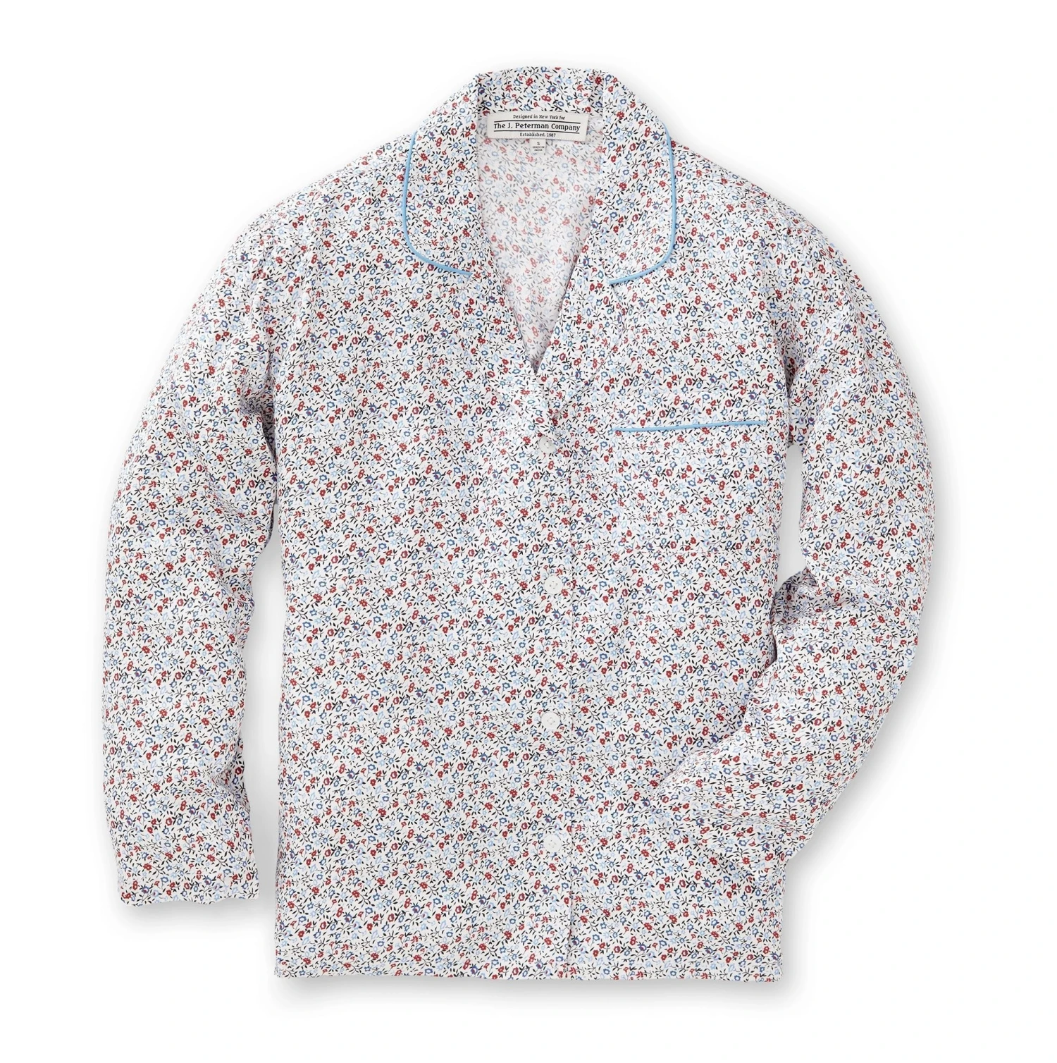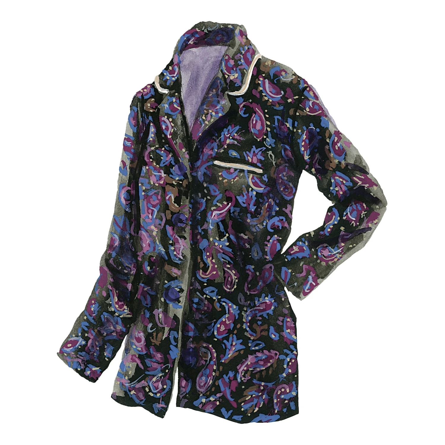 Veronica’s Satin PJ Shirt (No. 7097). Long sleeve pajama style in delicious Modal satin viscose. Black poly shiny-finish buttons. Tab collar. Patch pocket at chest. Button closure. Contrast piping at all edges. Imported.