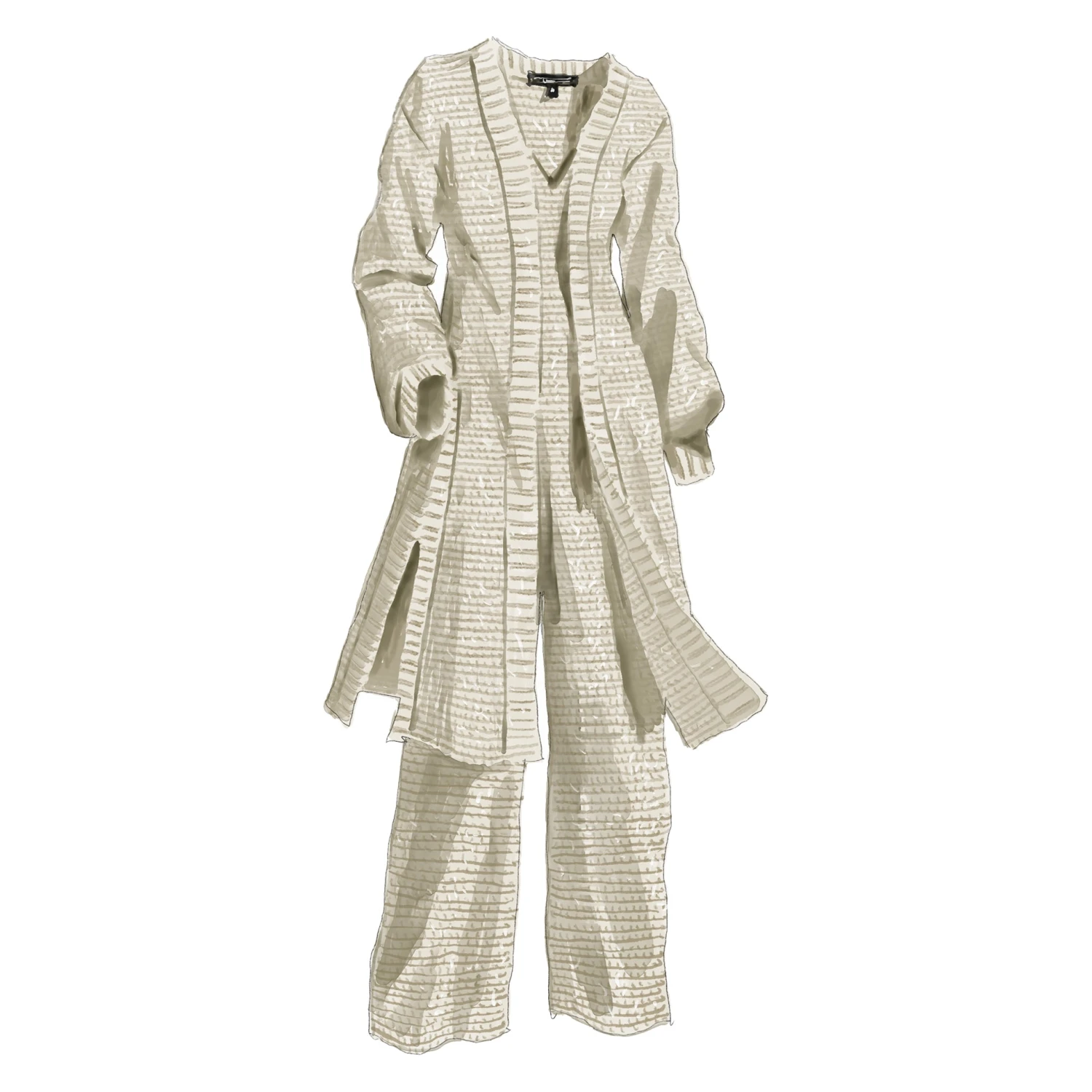 Weekend Playsuit (No. J8663). 100% fine merino wool. Super soft. Very comfortable and relaxed fit. No need for belt cinching or wasting brain cells on choosing accessories (unless youβre inclined). This is good all by itself. Hand wash. Do not tumble dry. Crafted in Ireland.Β